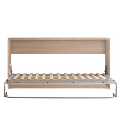 La cama abatible ofrece una solución práctica para optimizar el espacio en dormitorios pequeños o estudios. Su estructura metálica con lamas de madera se pliega dentro de un mueble de acabado natural, manteniendo la estética del entorno. El sistema de apertura asistida permite un uso cómodo y seguro, ideal para quienes buscan funcionalidad sin renunciar al diseño. Perfecta para combinar descanso y orden en un solo elemento. Para colchón de 90×190 de hasta 25cm de altura. Es necesario anclar la cama a la pared como se indica en las instrucciones de montaje. No apto para paredes de pladur. Incluye rebaje zócalo de 10×1.5cm. Incluye cinta sujetacolchón, bastidor somier de lama y bloqueo de seguridad.