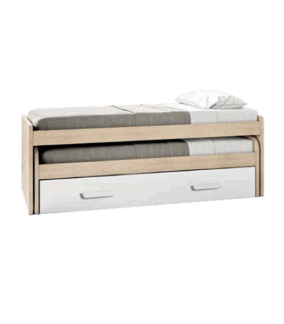 Esta cama compacta, con cama superior de 90×190, cuenta además con un contenedor doble lo cual hace que sea una solución funcional y estética para optimizar el espacio en dormitorios. Incorpora cabezales curvos de 25 mm de espesor y una cama interior reversible de 90×190. Su amplio cajón inferior ofrece doble capacidad de almacenaje, ideal para mantener el orden.