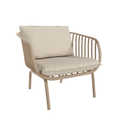 El Sillón Aruba 1 plaza, combina diseño moderno, resistencia y confort para interiores y exteriores. Fabricado en polipropileno con patas metálicas, incluye cojines acolchados y tapones de goma que protegen el suelo. Sus dimensiones equilibradas (80×79×70 cm) lo hacen ideal para terrazas, jardines o salones. Es una opción versátil, duradera y elegante que aporta estilo y comodidad a cualquier espacio.
