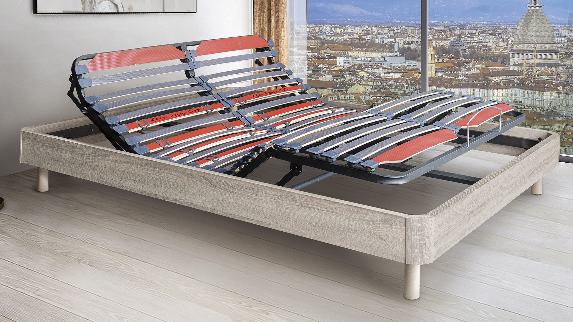 La Bañera Turín es una base metálica de diseño compacto, con 14 cm de altura y opción de elevarla a 29 cm con patas (no incluidas). Está disponible en varios colores y se puede combinar con el somier que prefieras, ofreciendo versatilidad y estilo en cualquier dormitorio.