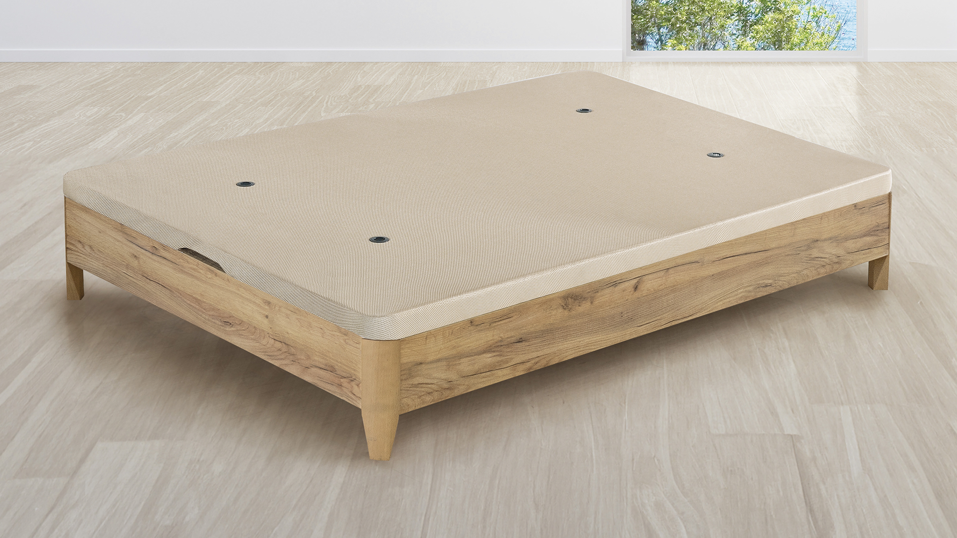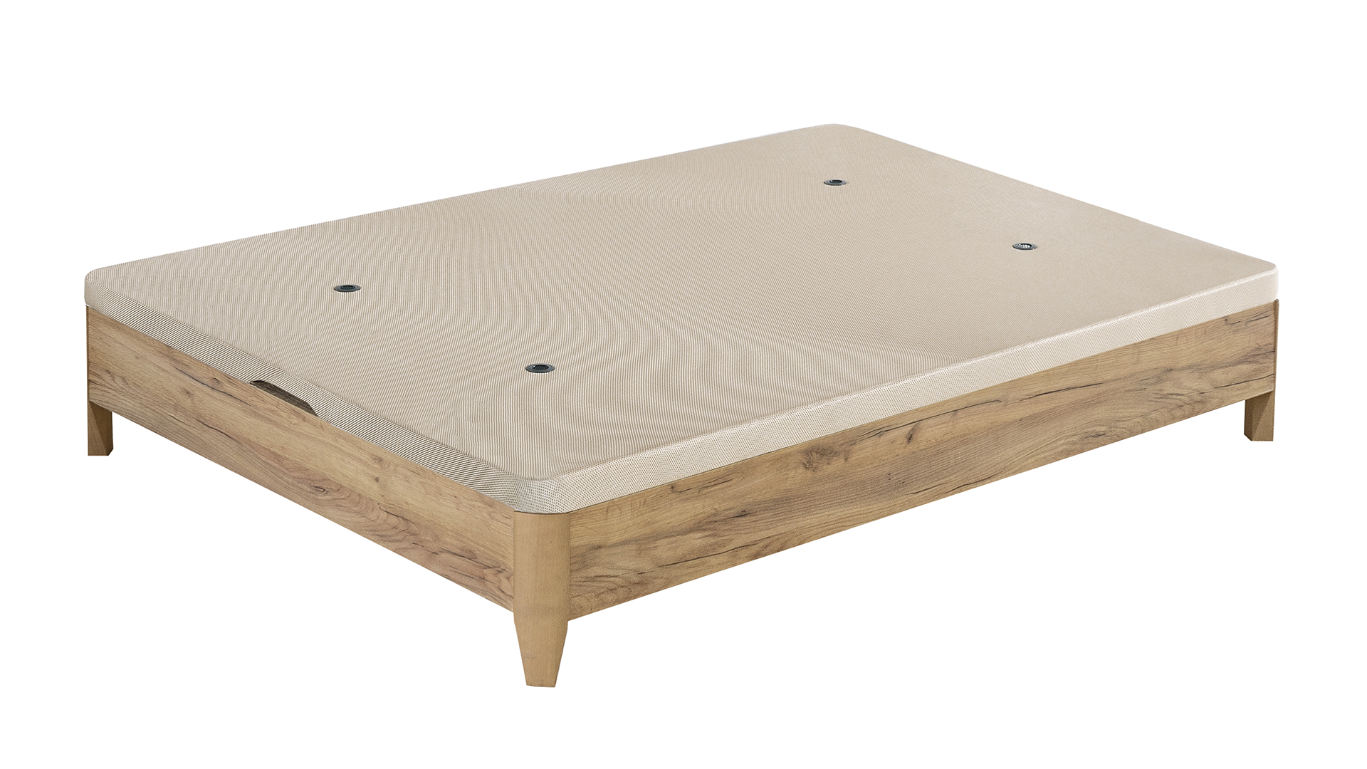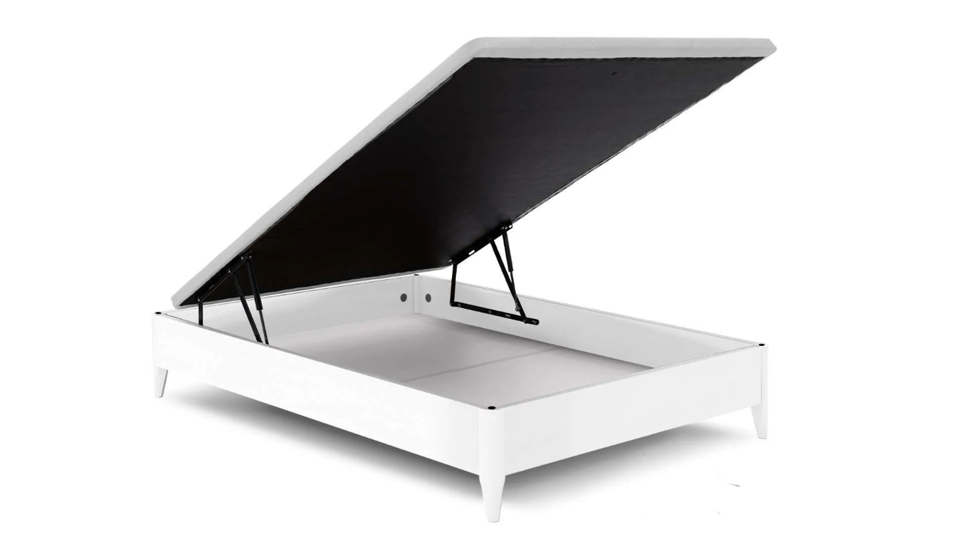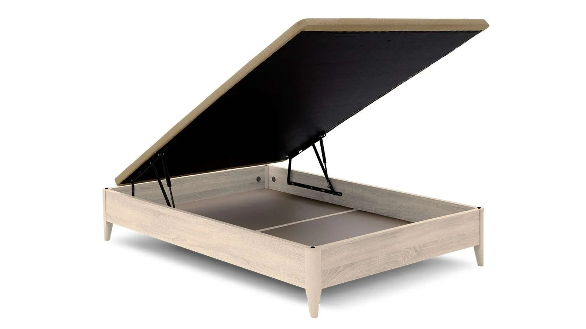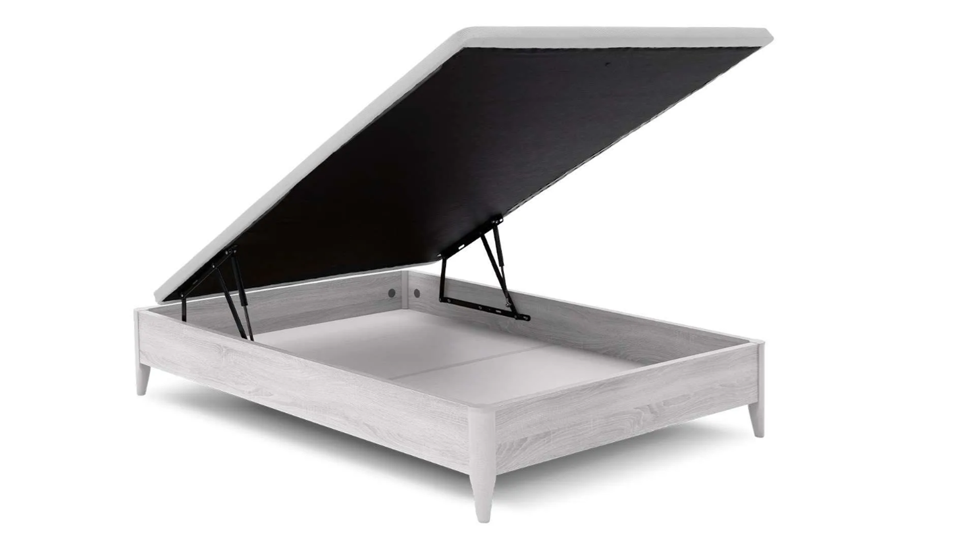 Canapé fijo Cope 20 con altura total de 26 cm, capacidad interior útil de 20 cm y patas de 11 cm, compatibles con robots aspiradores. Estructura metálica reforzada, tapa partida, ideada para espacios pequeños, unida en el montaje con pletinas de unión garantizando su estabilidad y durabilidad, antideslizante y ventilada.