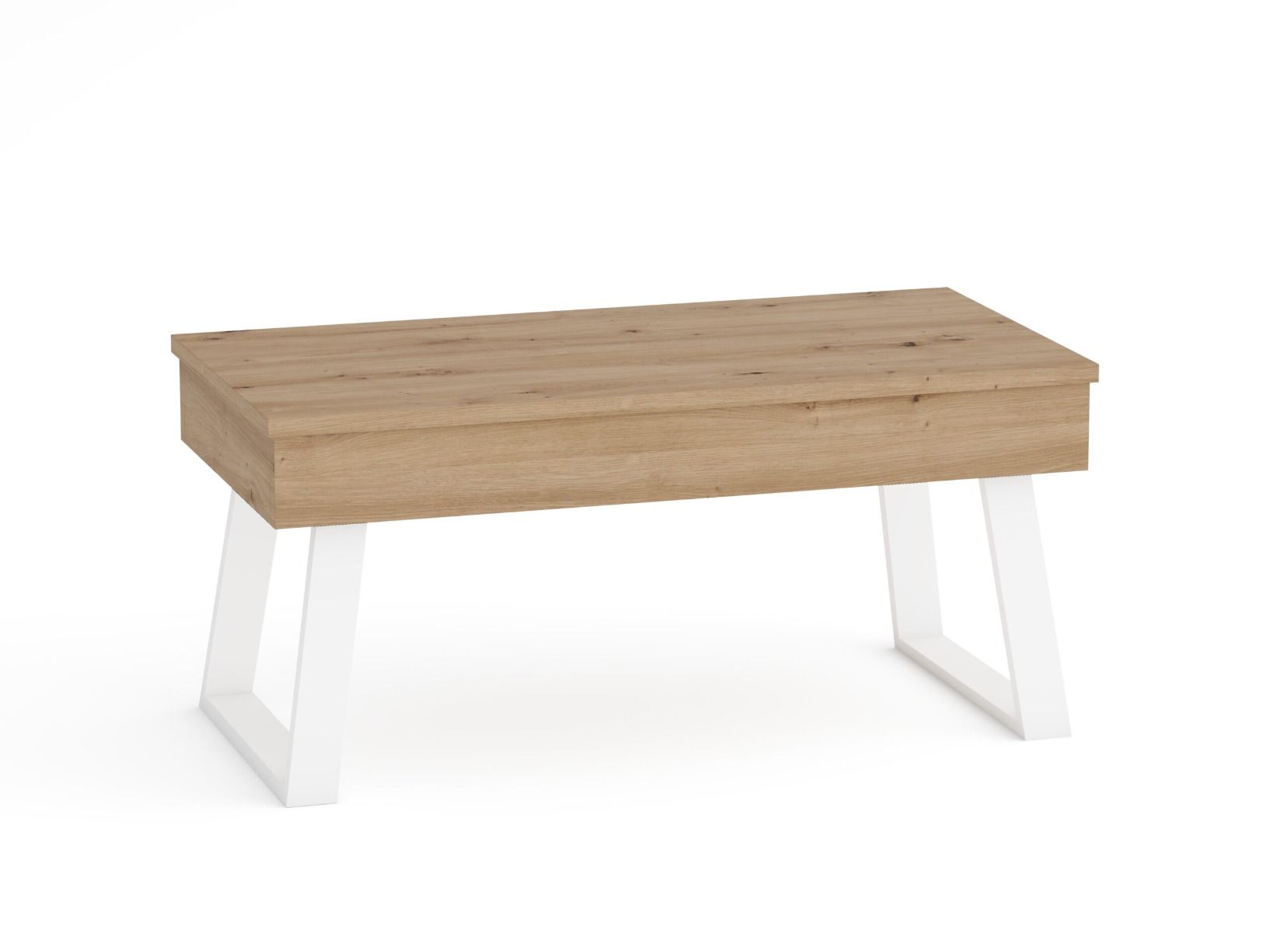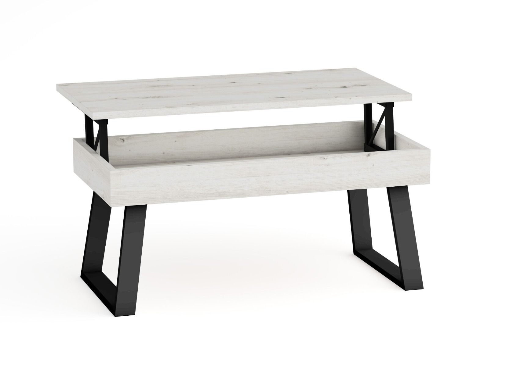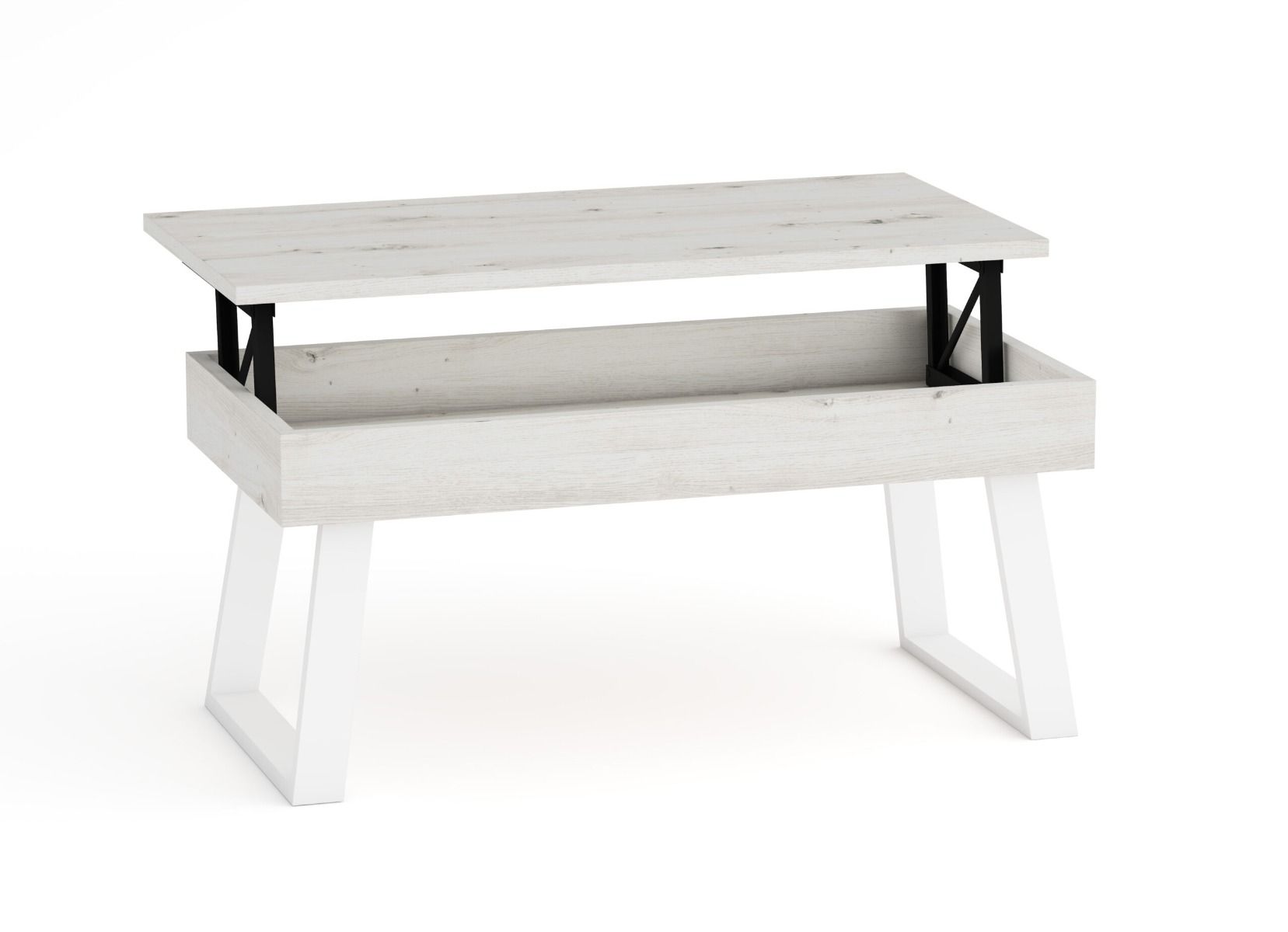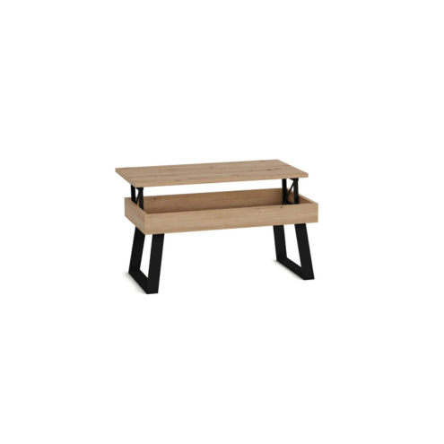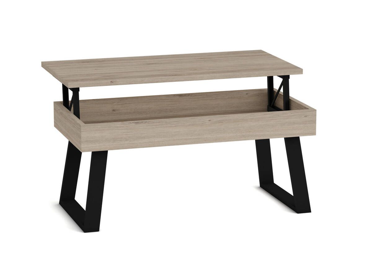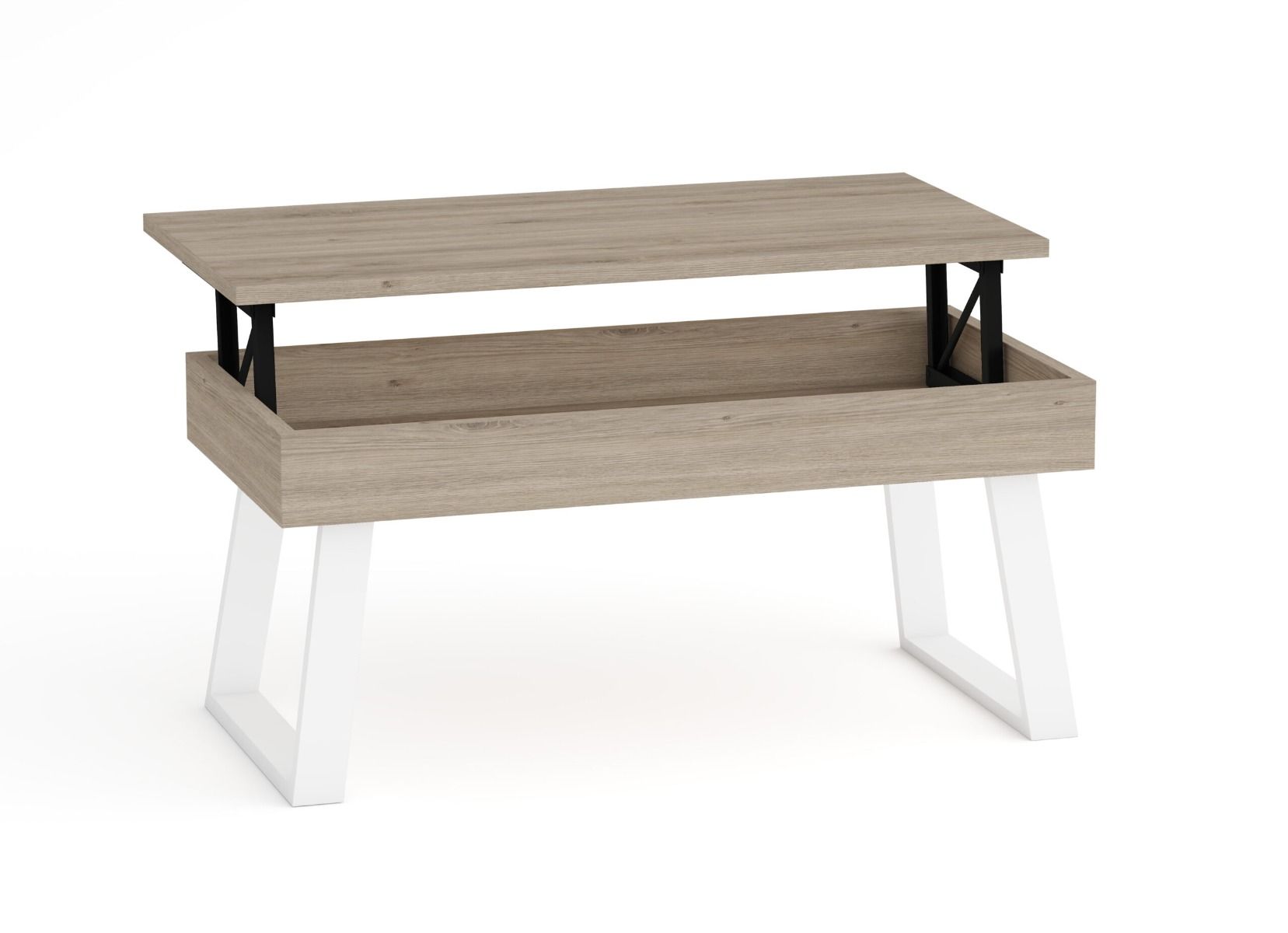 Mesa de centro con tapa elevable y formato compacto, ideal para salones funcionales. Fabricada en melamina resistente, ofrece superficie fácil de mantener y espacio de almacenaje oculto. Sus patas metálicas en trapecio aportan estabilidad y estilo contemporáneo, integrándose en ambientes modernos o escandinavos. Perfecta para comer, trabajar o relajarse desde el sofá.