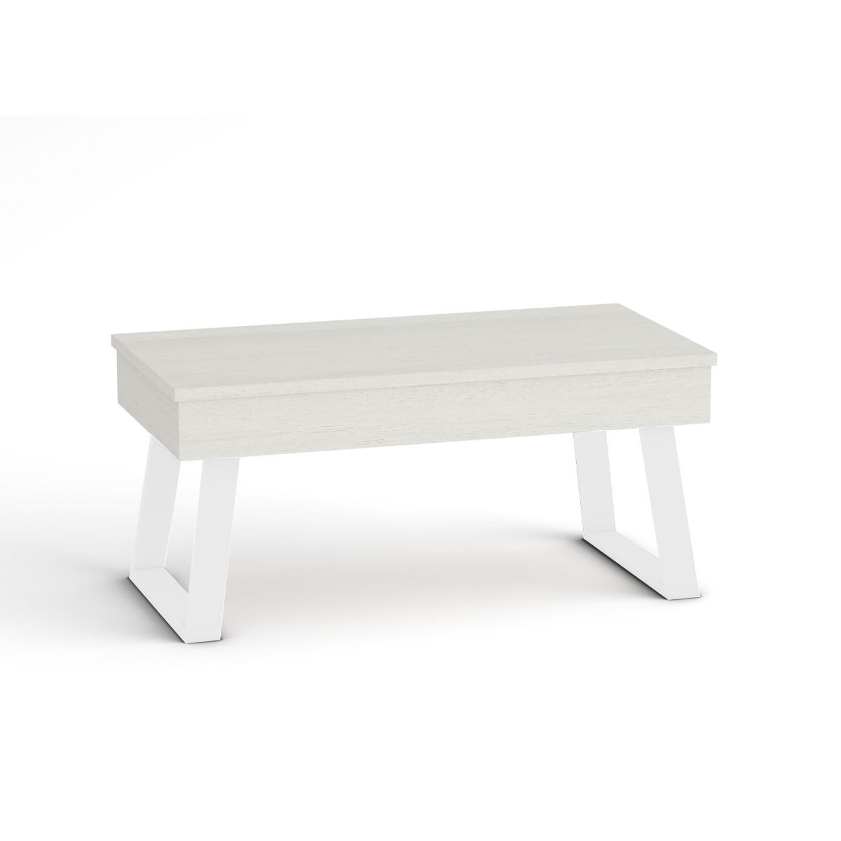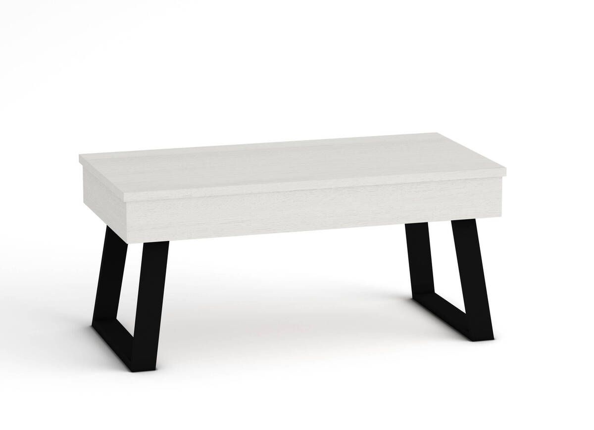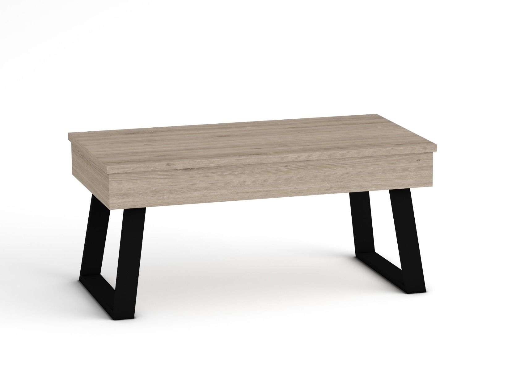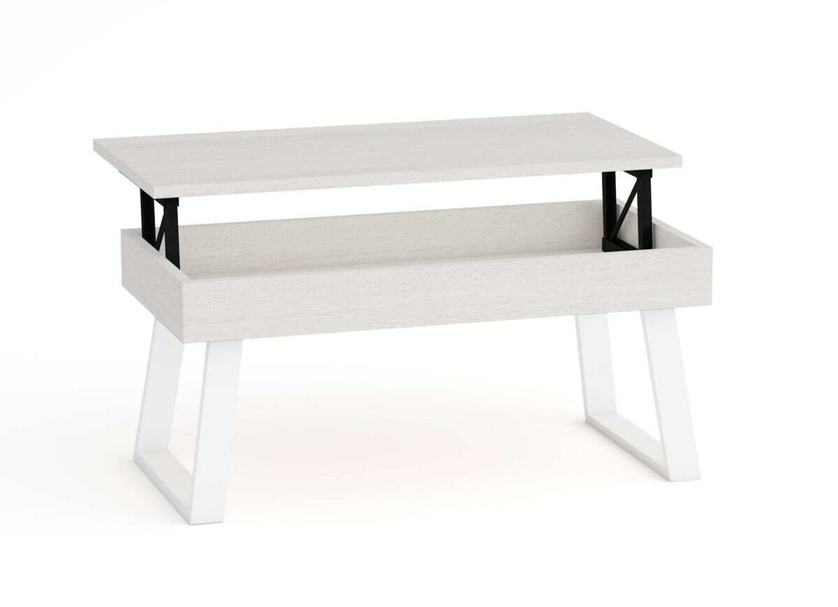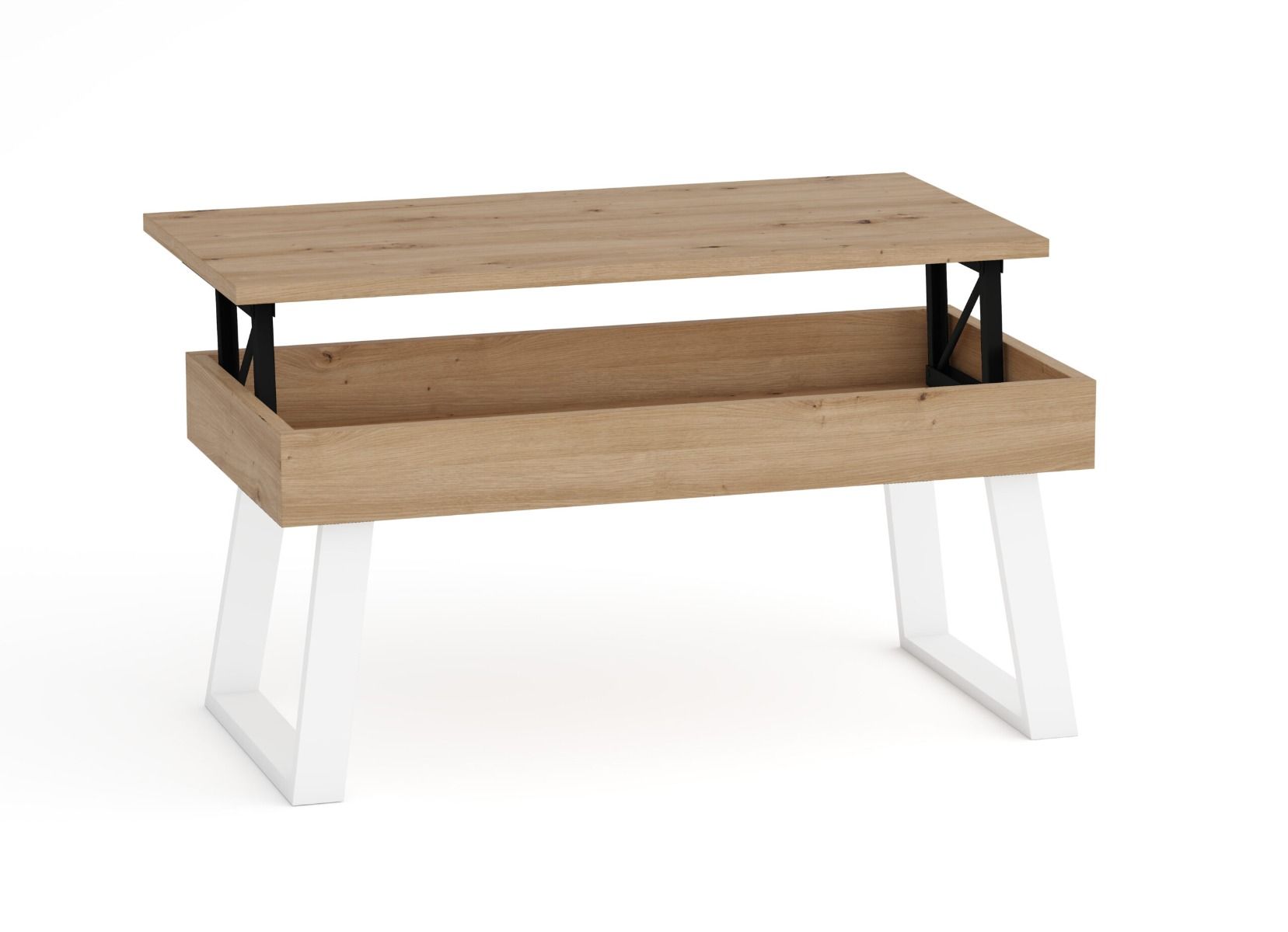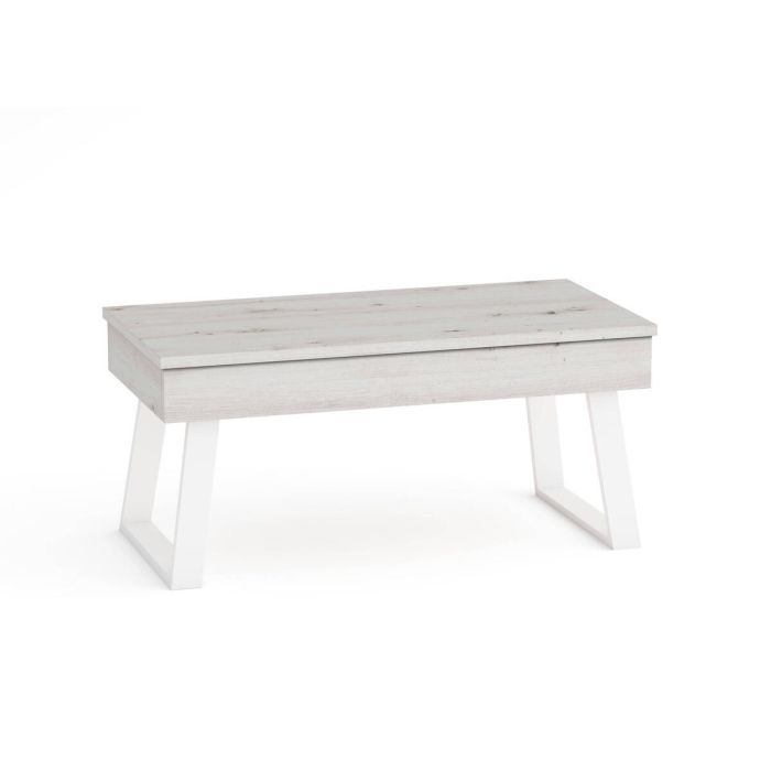 Mesa de centro con tapa elevable y formato compacto, ideal para salones funcionales. Fabricada en melamina resistente, ofrece superficie fácil de mantener y espacio de almacenaje oculto. Sus patas metálicas en trapecio aportan estabilidad y estilo contemporáneo, integrándose en ambientes modernos o escandinavos. Perfecta para comer, trabajar o relajarse desde el sofá.