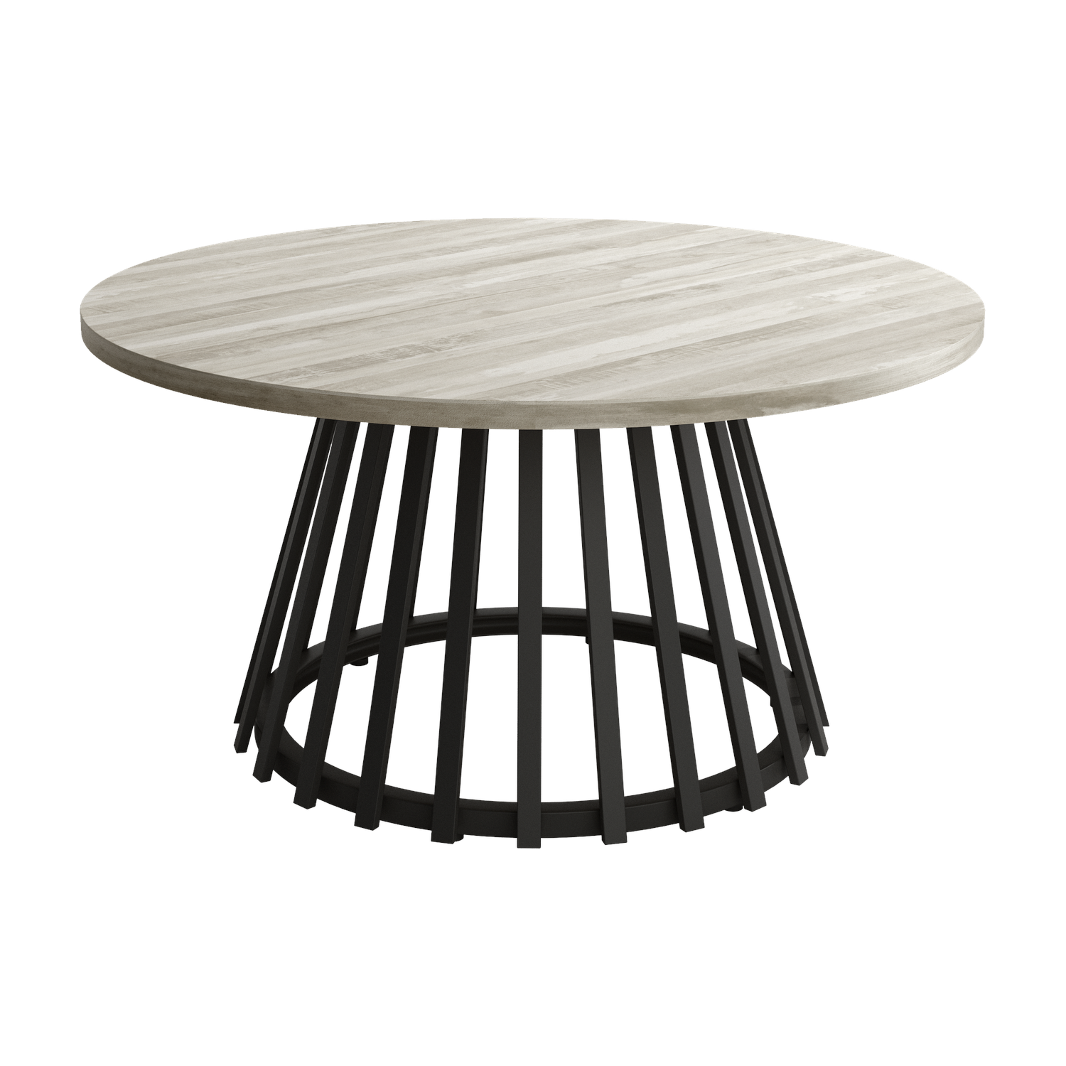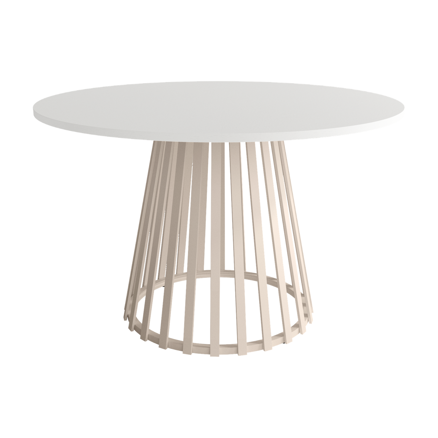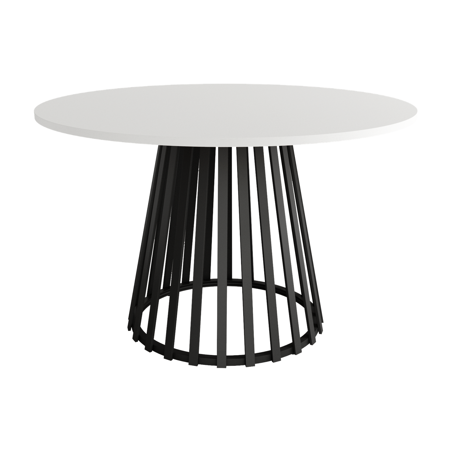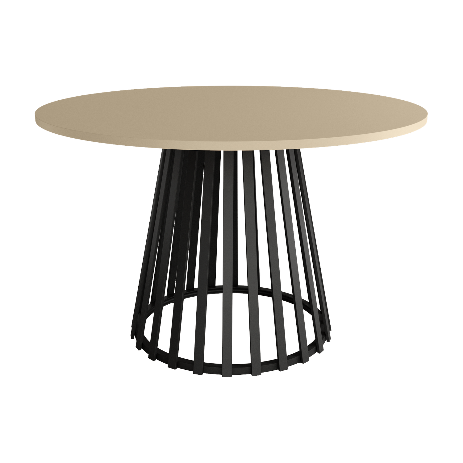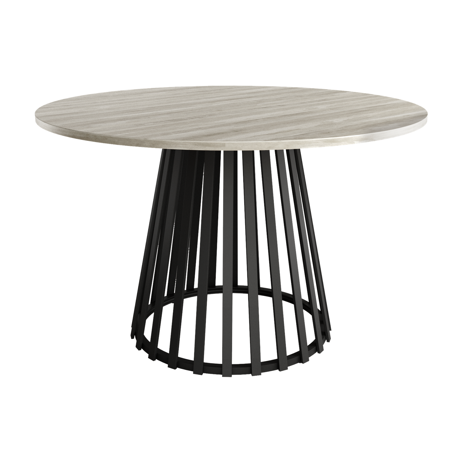 Mesa redonda de comedor con diseño contemporáneo y líneas suaves. Fabricada en España, combina tablero de aglomerado de alta calidad con patas metálicas estables. Su estilo versátil se adapta a ambientes modernos, minimalistas o industriales, ofreciendo funcionalidad y elegancia en cualquier espacio. Montaje sencillo y acabado resistente para un uso diario duradero.