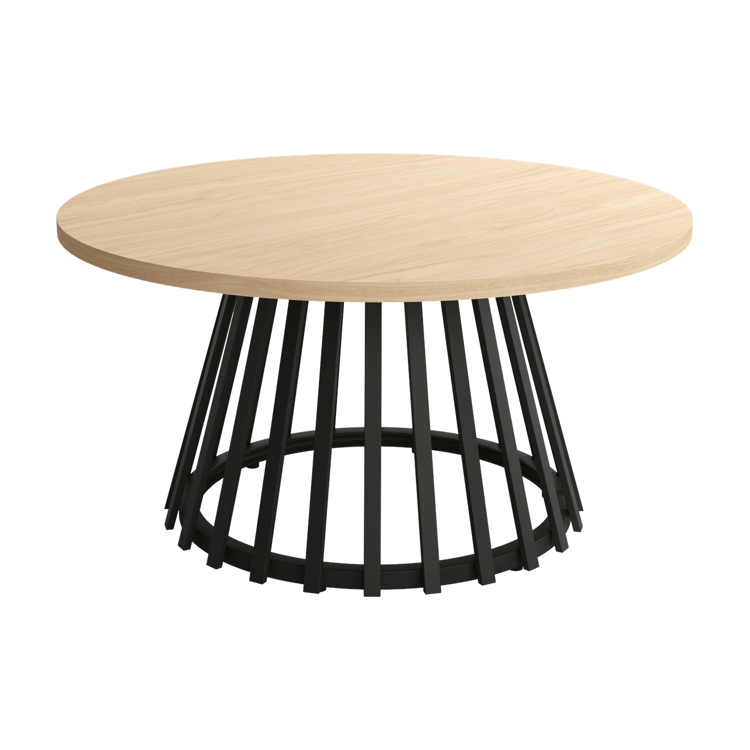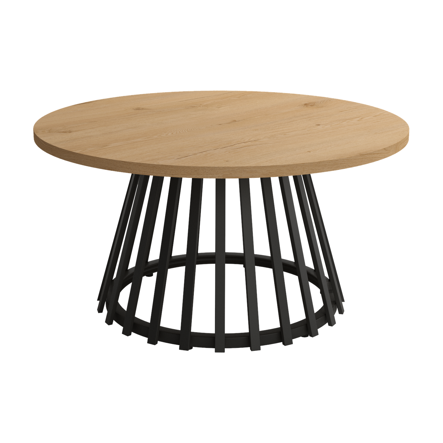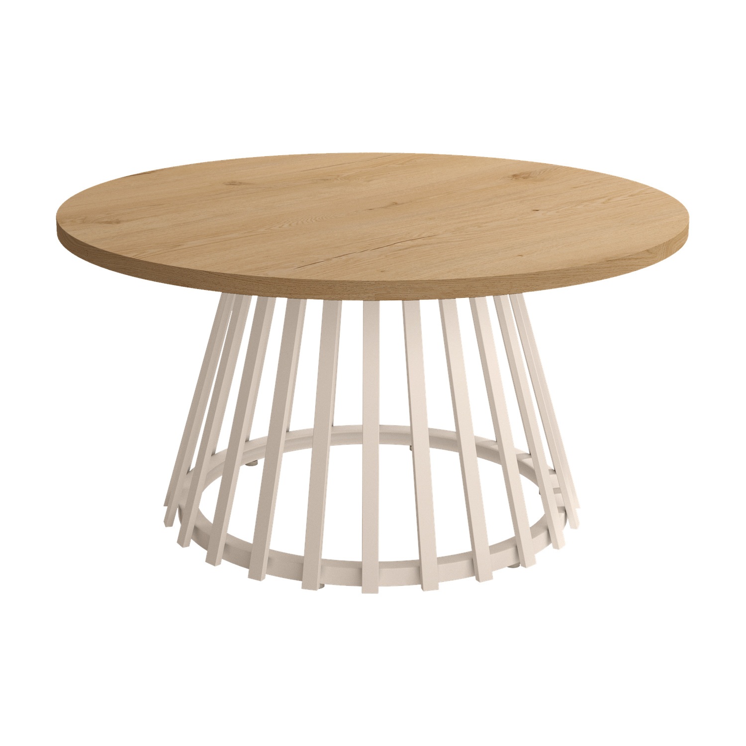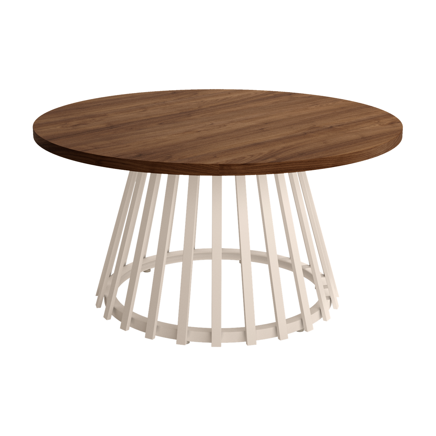 Mesa redonda de comedor con diseño contemporáneo y líneas suaves. Fabricada en España, combina tablero de aglomerado de alta calidad con patas metálicas estables. Su estilo versátil se adapta a ambientes modernos, minimalistas o industriales, ofreciendo funcionalidad y elegancia en cualquier espacio. Montaje sencillo y acabado resistente para un uso diario duradero.