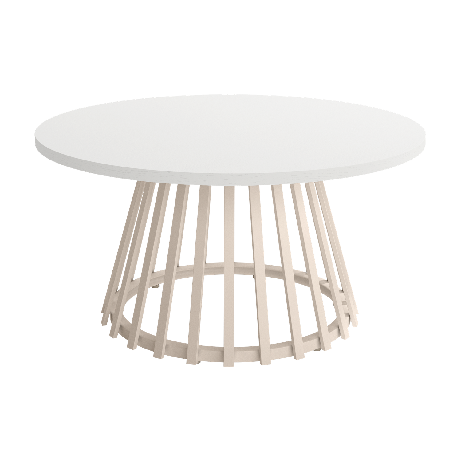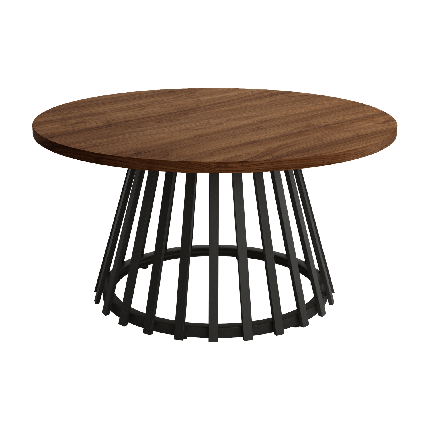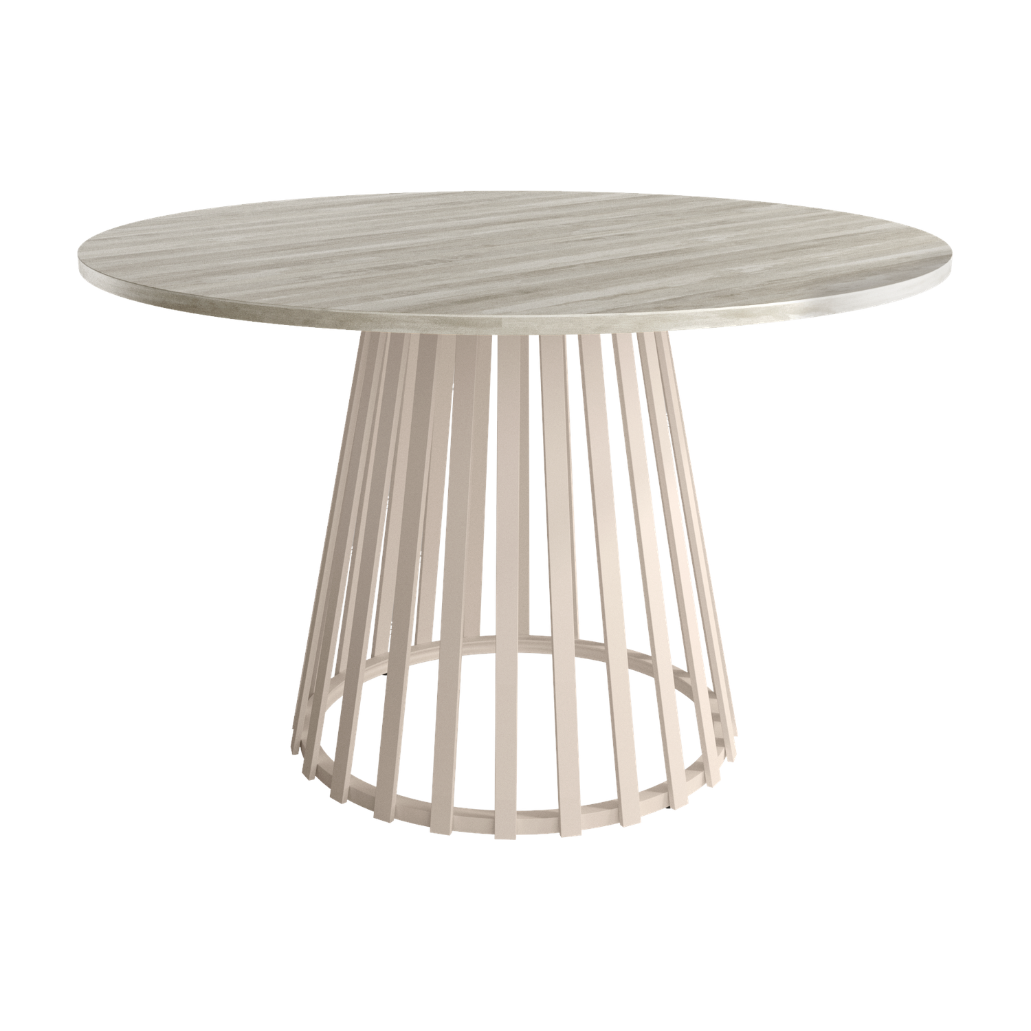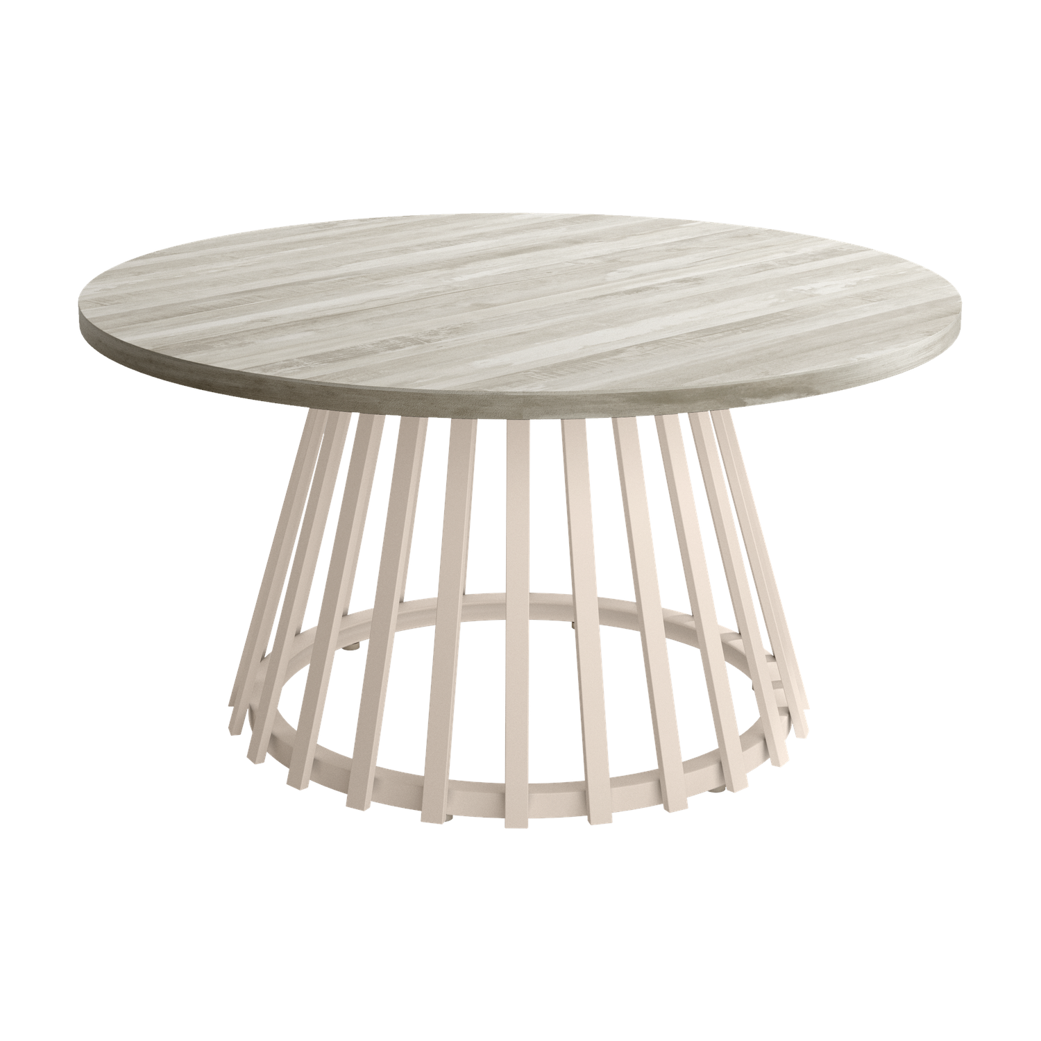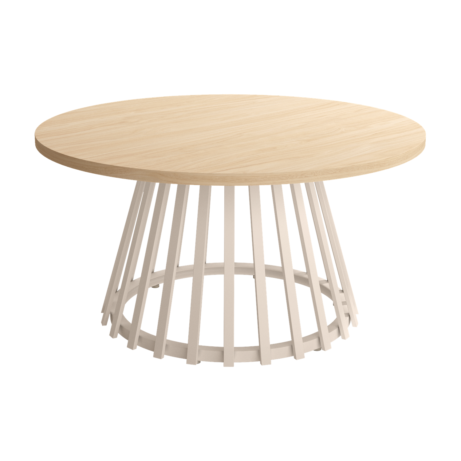 Mesa redonda de comedor con diseño contemporáneo y líneas suaves. Fabricada en España, combina tablero de aglomerado de alta calidad con patas metálicas estables. Su estilo versátil se adapta a ambientes modernos, minimalistas o industriales, ofreciendo funcionalidad y elegancia en cualquier espacio. Montaje sencillo y acabado resistente para un uso diario duradero.