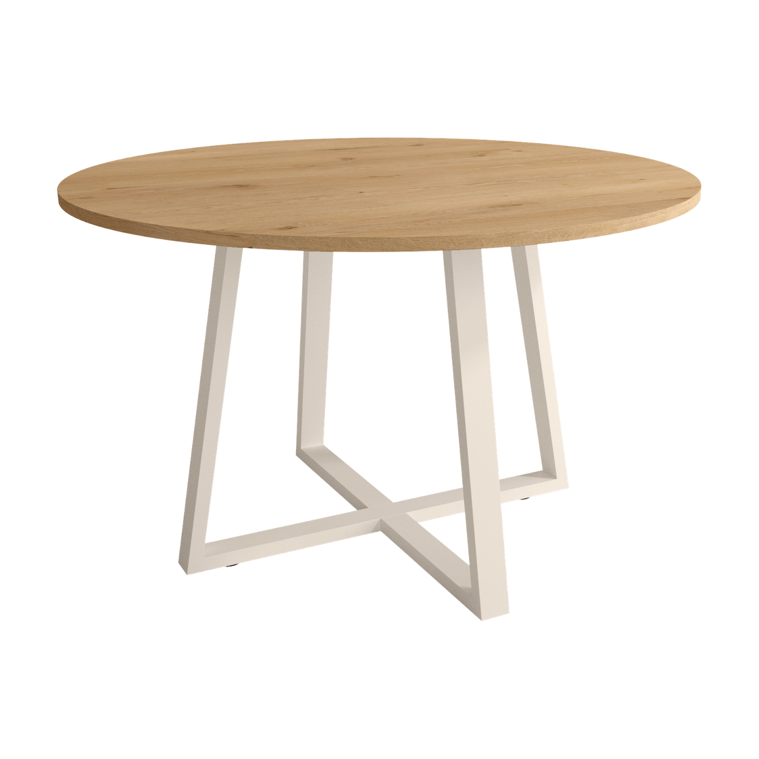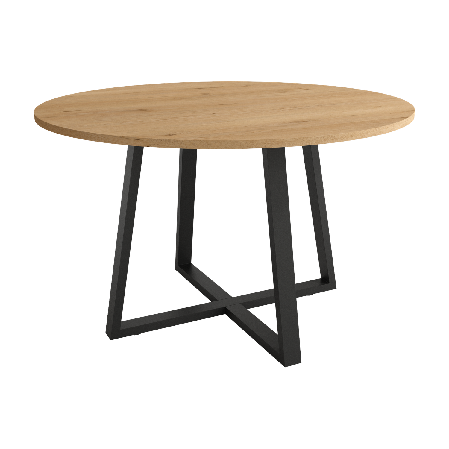 Mesa circular de diseño moderno con tablero en melamina y estructura metálica, ideal para salones contemporáneos. Fabricada en España con madera sostenible, ofrece estabilidad, fácil montaje y una superficie amplia para decoración o uso diario. Su estilo minimalista se adapta a distintos ambientes, combinando elegancia y funcionalidad en una sola pieza.
