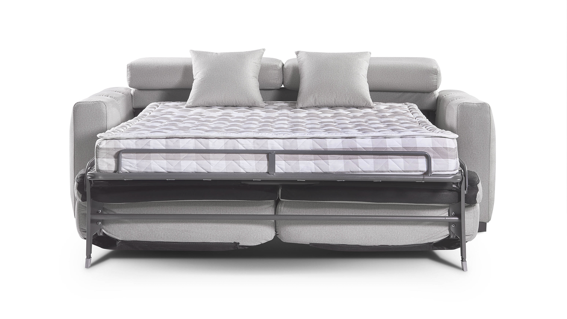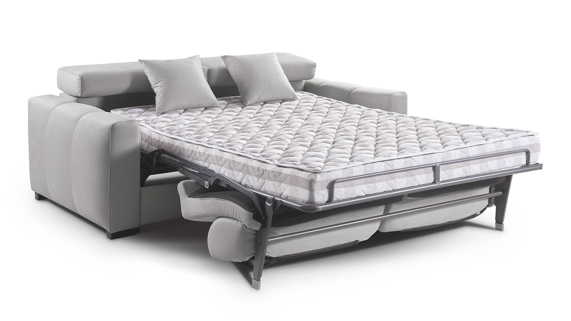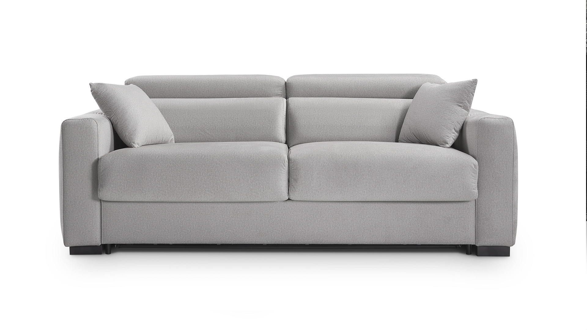 Sofá cama modelo Kala, diseñado para ofrecer confort y funcionalidad en un solo mueble. Incorpora colchón con grosor de 16 cm, cabezal reclinable y sistema de apertura italiana.