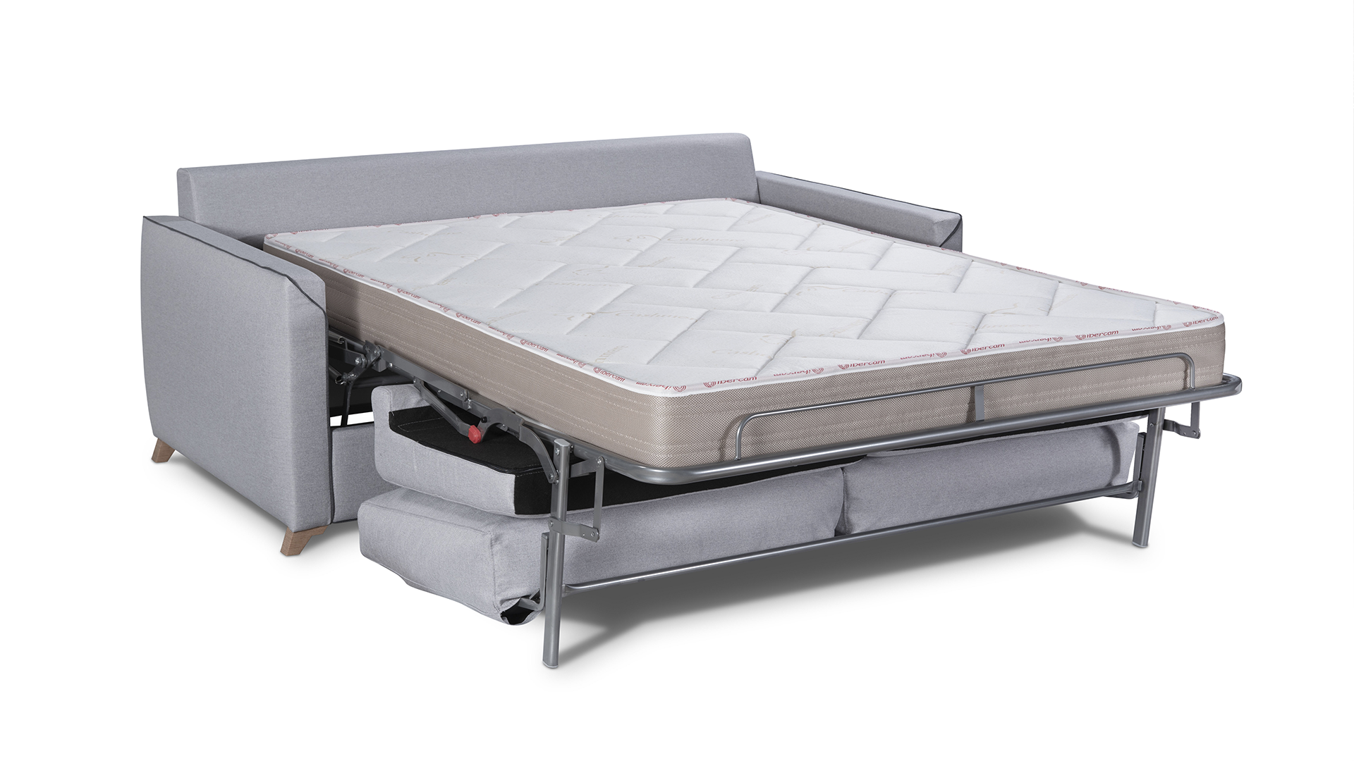 El sofá cama Sylvia cuenta con mecanismo de apertura italiano, caracterizado por su estética de líneas limpias y modernas. Ideal para utilizar como asiento diario o como cama auxiliar gracias a su colchón de 16 cm de grosor, que garantiza una gran comodidad.