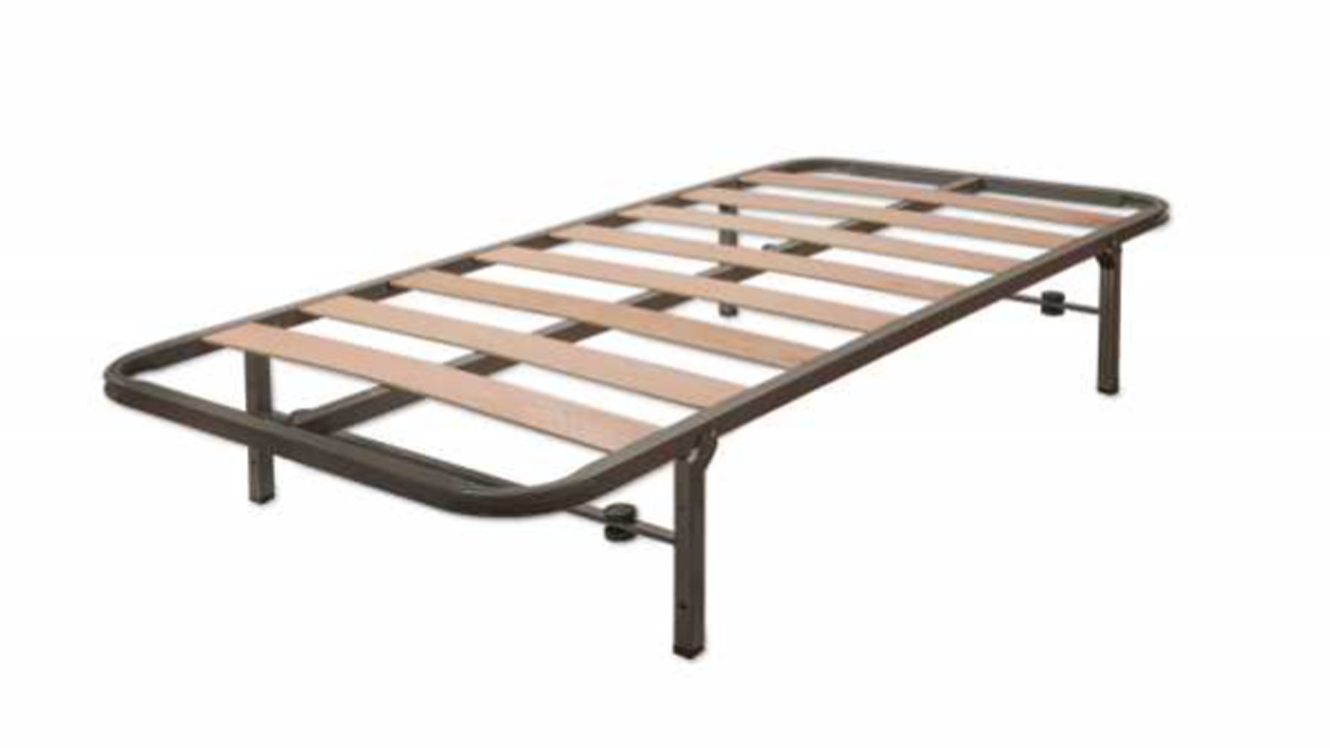Somier arrastre nido con estructura metálica reforzada, ideal para espacios reducidos. Incluye patas plegables, apertura automática y barra de refuerzo para anchos inferiores a 100 cm. Compatible con somieres de hasta 15 cm de altura, con pata inferior equipada con ruedas para facilitar el desplazamiento.