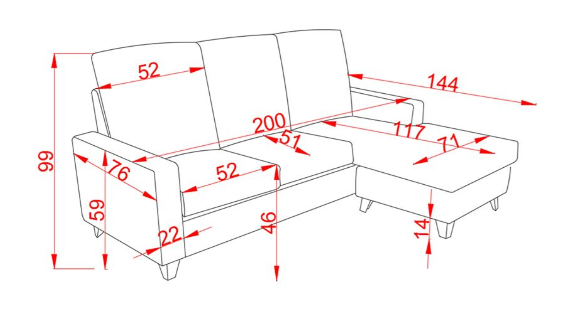 Chaiselongue Reversible 200Cm Mod Bigastro