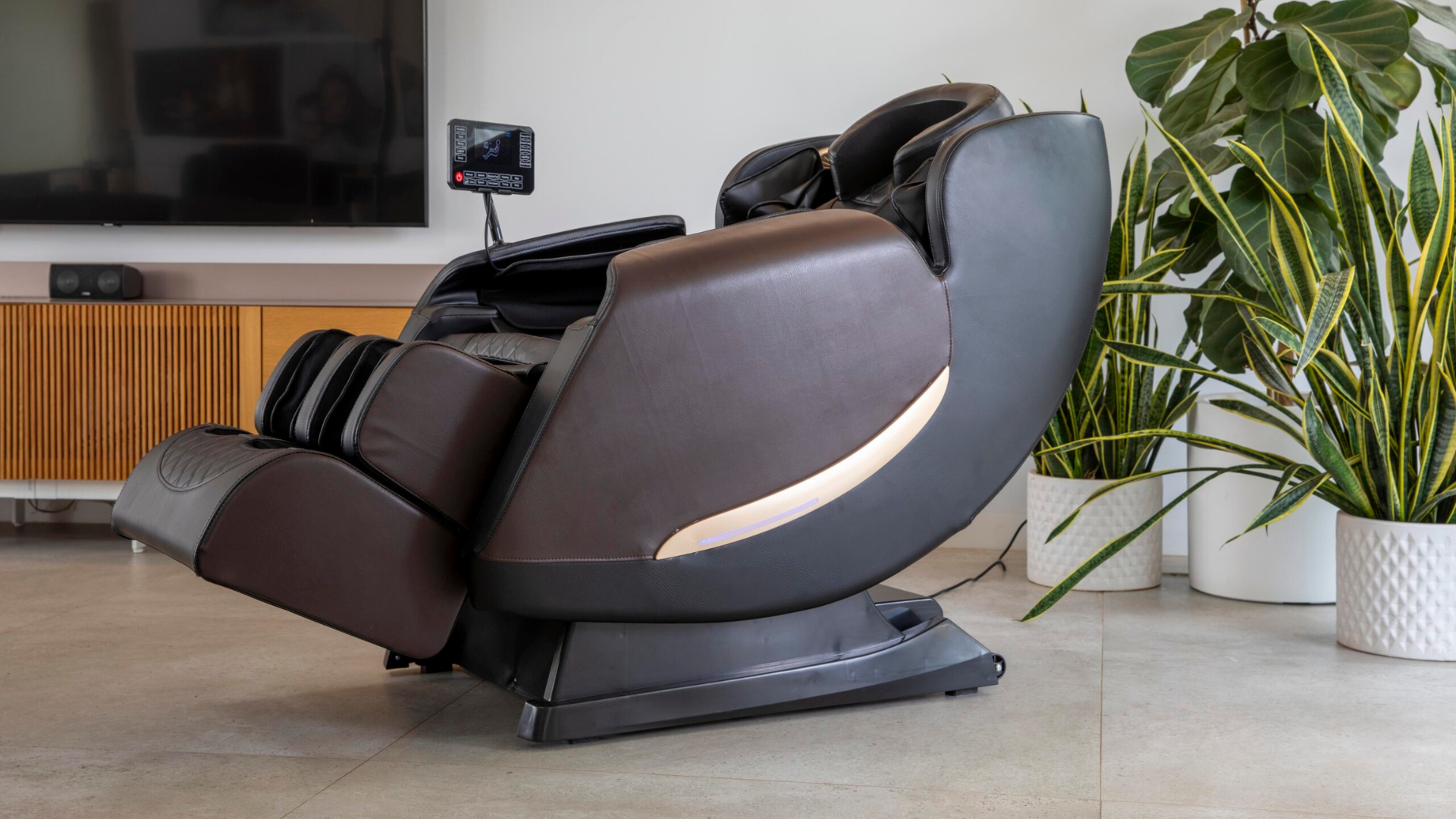 Sillón relax de gama alta con pantalla digital para controlar todas sus funciones de forma intuitiva. Ofrece masaje completo desde cuello a pies, con gravedad cero regulable, presoterapia por aire y función de calor localizada. Incorpora altavoces Bluetooth para disfrutar música mientras descansas. Fabricado en polipiel premium, combina tecnología, confort y diseño en una sola pieza.