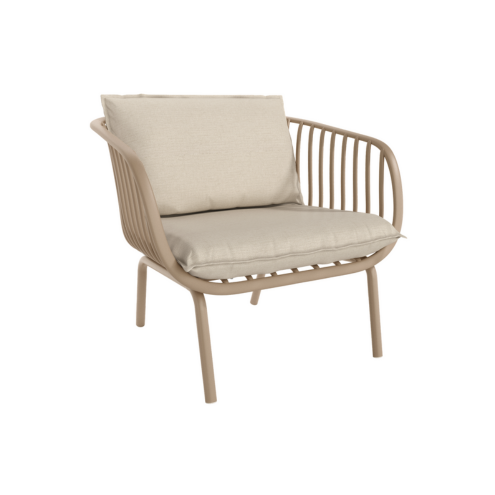 El Sillón Aruba 1 plaza, combina diseño moderno, resistencia y confort para interiores y exteriores. Fabricado en polipropileno con patas metálicas, incluye cojines acolchados y tapones de goma que protegen el suelo. Sus dimensiones equilibradas (80×79×70 cm) lo hacen ideal para terrazas, jardines o salones. Es una opción versátil, duradera y elegante que aporta estilo y comodidad a cualquier espacio.