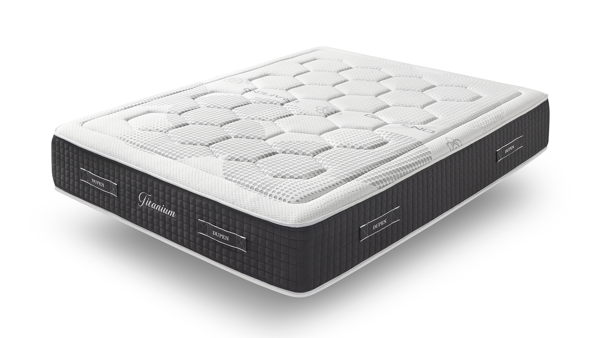 El colchón TITANIUM TECH combina muelles ensacados con visco grafeno de alta densidad para ofrecer un descanso reparador, con máxima adaptabilidad y reducción de presión. Su diseño de 5 zonas de firmeza y asas bordadas lo convierten en una opción premium y funcional. 32cm de altura.