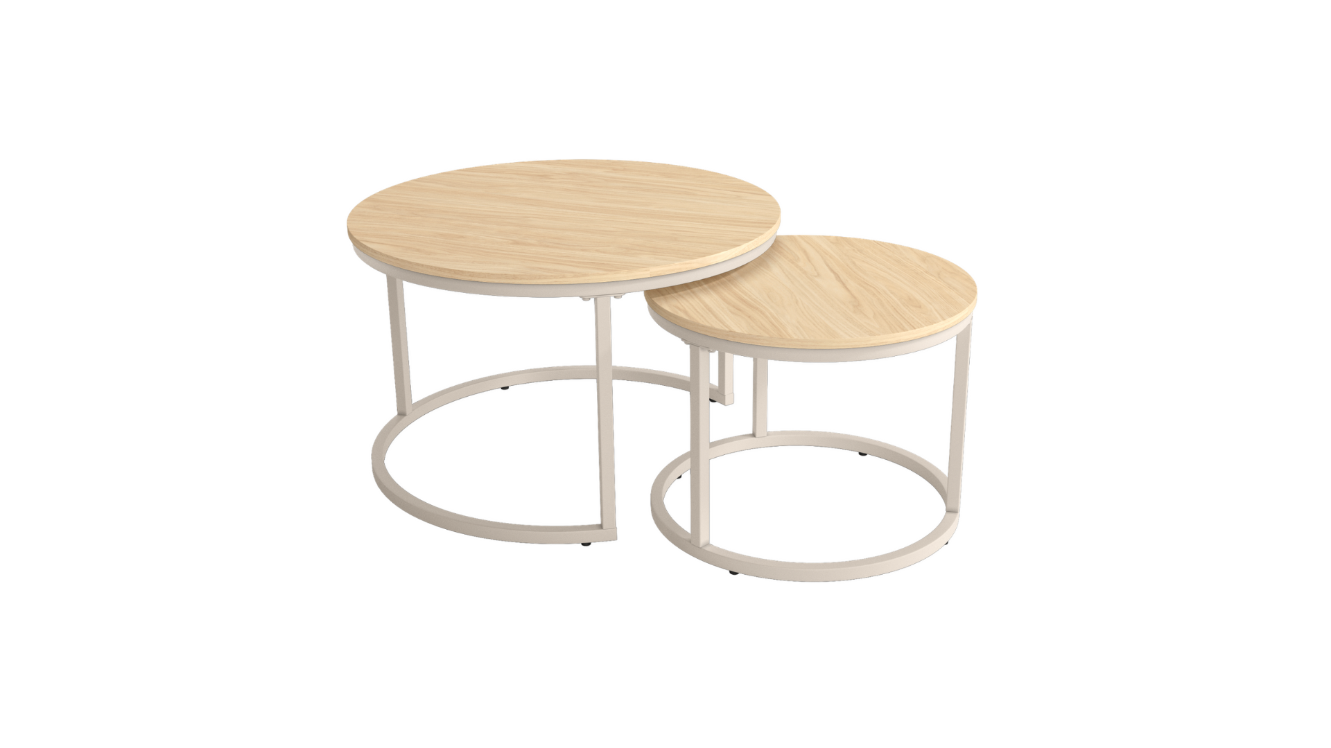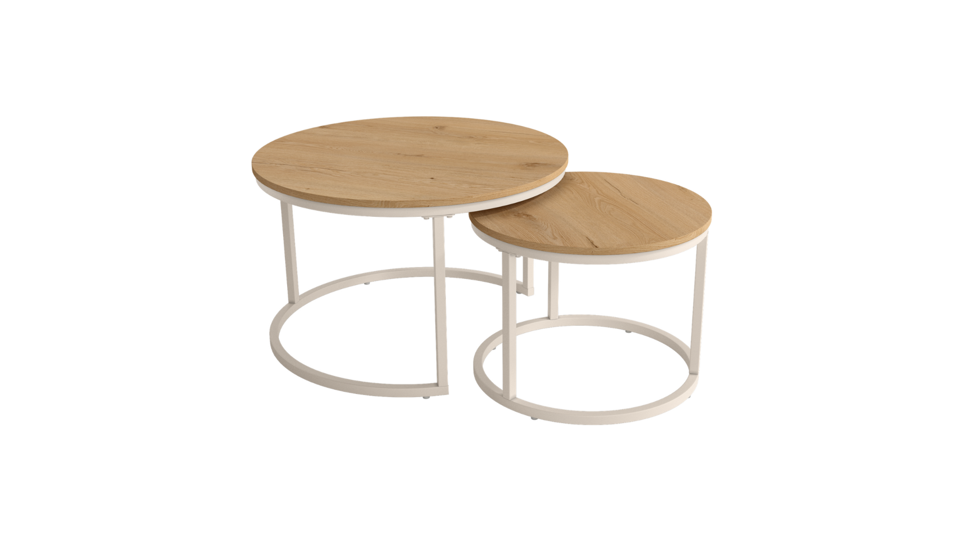 Set de dos mesas auxiliares con estructura metálica y diseño minimalista, ideal para complementar cualquier estancia. Fabricadas en España, combinan estética moderna con funcionalidad práctica. Su acabado elegante y montaje sencillo las convierte en una opción versátil y resistente para el uso diario. Perfectas para espacios pequeños o como apoyo decorativo en salones, dormitorios o zonas de trabajo.